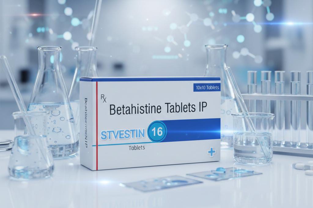 Stvestin 16 from Astemax Biotech is a betahistine 16 mg tablet used to treat vertigo and balance disorders.