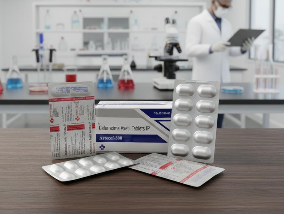 Astecef 500 is a high-quality Cefuroxime 500 mg tablet from Astemax Biotech, delivering powerful defense against bacterial infections. Manufactured in a GMP-certified unit, it ensures superior efficacy and reliability.