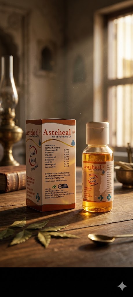 Asteheal Oil is a potent Ayurvedic pain relief formulation from Astemax Biotech, blending time-tested herbs for targeted musculoskeletal relief.
