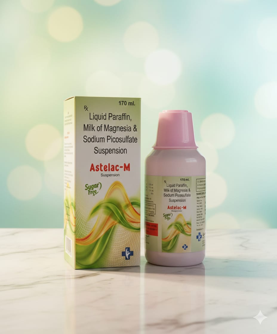 Astelac M is Astemax Biotech’s branded liquid paraffin and milk of magnesia syrup, a gentle osmotic laxative for effective constipation relief.