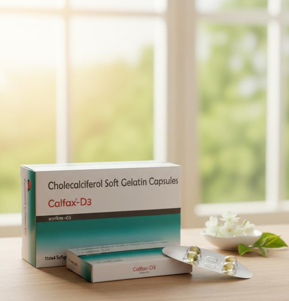 Calfax D3 is a cholecalciferol (vitamin D3) capsule produced by Astemax Biotech Private Limited,