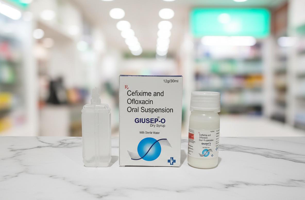 Giusep O is Astemax Biotech’s branded pediatric dry suspension combining Cefixime (50 mg/5 ml) and Ofloxacin, formulated as a 30 ml bottle for reconstitution, ideal for treating bacterial infections in children.