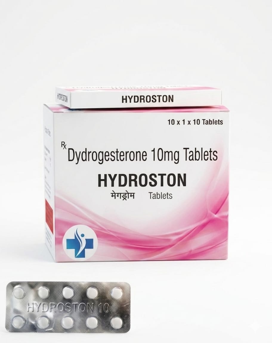 Hydroston is a synthetic progestogen (progesterone analog) tablet containing dydrogesterone 10 mg, used for various gynaecological and hormonal indications. Dydrogesterone behaves like natural progesterone and supports endometrial transformation, luteal‑phase support, and menstrual‑cycle regulation, with relatively fewer androgenic or glucocorticoid effects compared with older progestins.