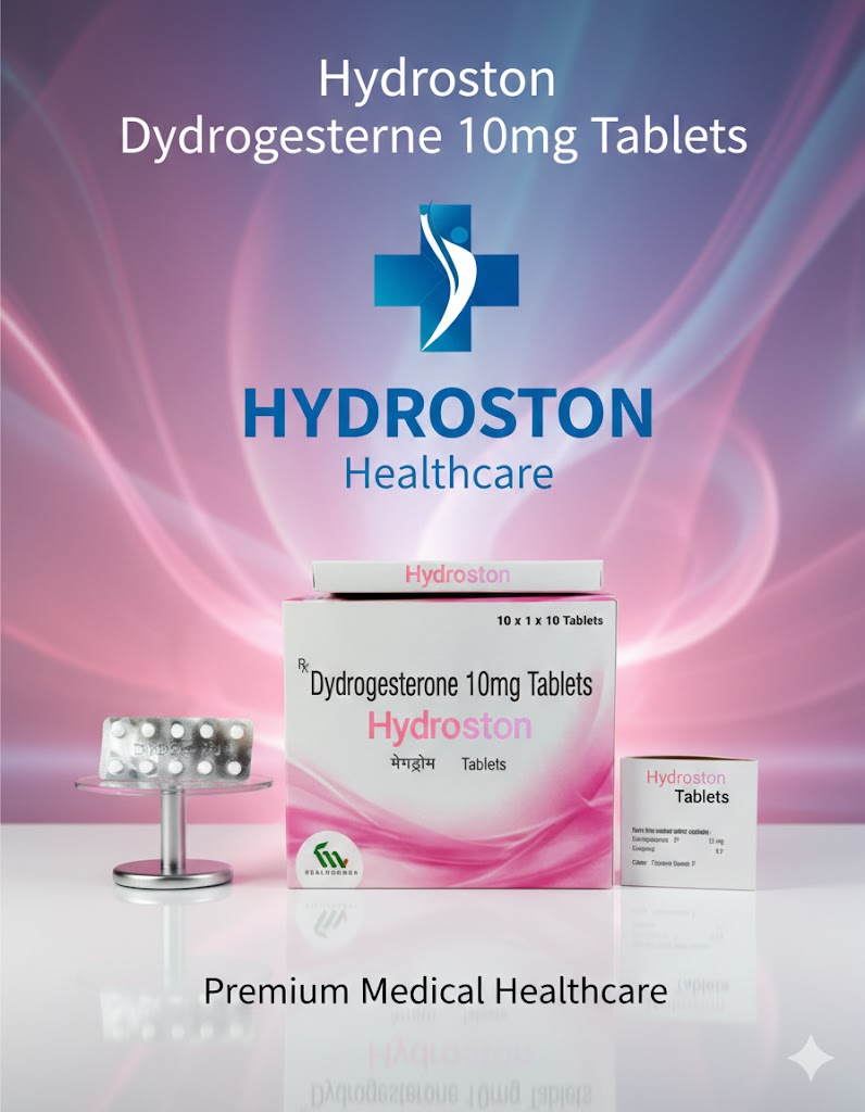 Hydroston is a synthetic progestogen (progesterone analog) tablet containing dydrogesterone 10 mg, used for various gynaecological and hormonal indications. Dydrogesterone behaves like natural progesterone and supports endometrial transformation, luteal‑phase support, and menstrual‑cycle regulation, with relatively fewer androgenic or glucocorticoid effects compared with older progestins.