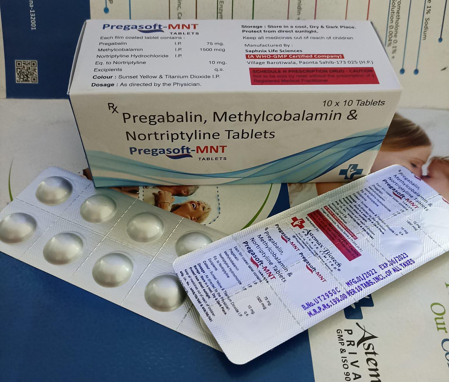 Pregasoft-MNT is a prescription medication used to treat neuropathic pain from nerve damage. It typically combines pregabalin, methylcobalamin, and sometimes nortriptyline or other nutrients to manage conditions like diabetic neuropathy.