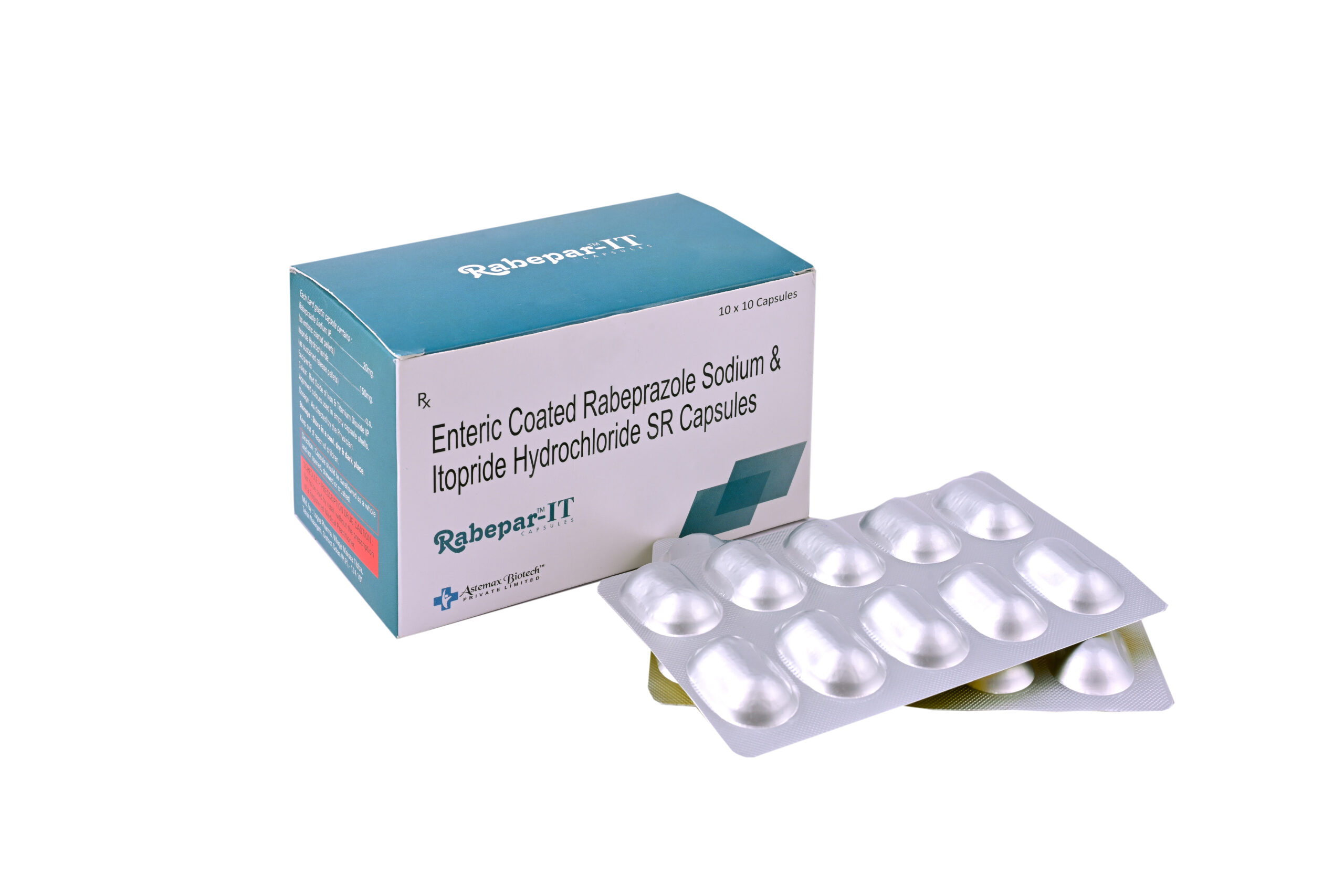 This fixed-dose combination features rabeprazole sodium, which reduces stomach acid production, and itopride hydrochloride, which enhances gastric motility and emptying. It’s designed for patients with both acidity and delayed stomach emptying, offering dual relief in one convenient capsule.