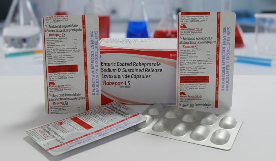 Rabepar LS Capsule by Astemax Biotech features an advanced enteric-coated formula with rabeprazole and levosulpiride sustained-release, ensuring protected delivery for maximum acid suppression and motility enhancement. This enteric coating safeguards the active ingredients from stomach acid breakdown, releasing them precisely in the intestines for superior absorption and prolonged efficacy.
