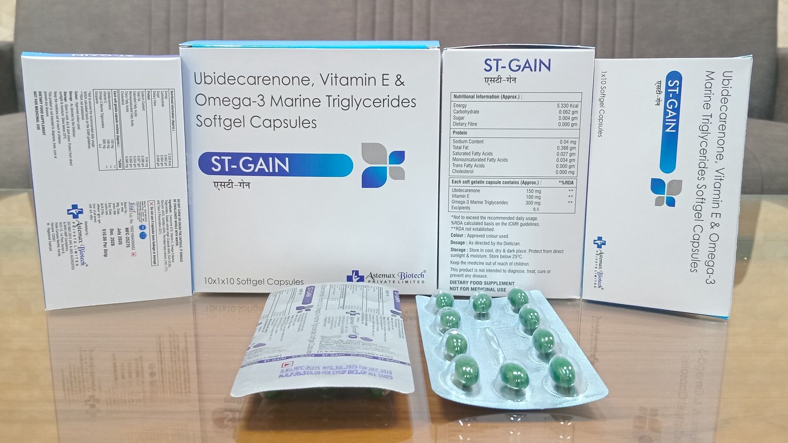 ST Gain is cardiac nutritional supplement commonly used to address omega-3 which support heart health. It typically contains Omega-3 fatty acids, Vitamin E, and antioxidants which is good for heart health.