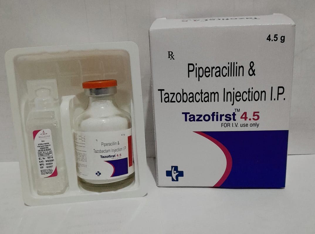 Tazofirst 4.5 Injection is a combination antibiotic containing piperacillin and tazobactam, used to treat severe bacterial infections. It combines a broad-spectrum penicillin antibiotic with a beta-lactamase inhibitor to overcome bacterial resistance.